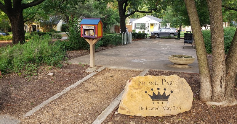 After 6 years, our little pocket park is getting improved features based on direct input from neighbors back in 2017. Then, the Stone Park Better Block was organized to survey neighbors about what improvements to the park they wanted to see, and asked them to help build and demonstrate those ideas. Making the park more usable for all was the goal of the project. At the time, many neighbors were starting families or young families were moving in, so the focus became how can the park be enhanced for children and parents. Ideas like adding a table to the bench area, a toy box for donated toys for kids to play while parents chatted, adding a barrier fence along the Edgefield side so parents felt a little safer to let children wonder, enhancing pedestrian access with crosswalks, a bicycle rack, a stage for impromptu concerts or buskers, a swing, a hammock, a little library were all incorporated into a design, and then built by neighbors to demonstrate at an event to see how participants would react, get their feedback, and see how they would use the new features.